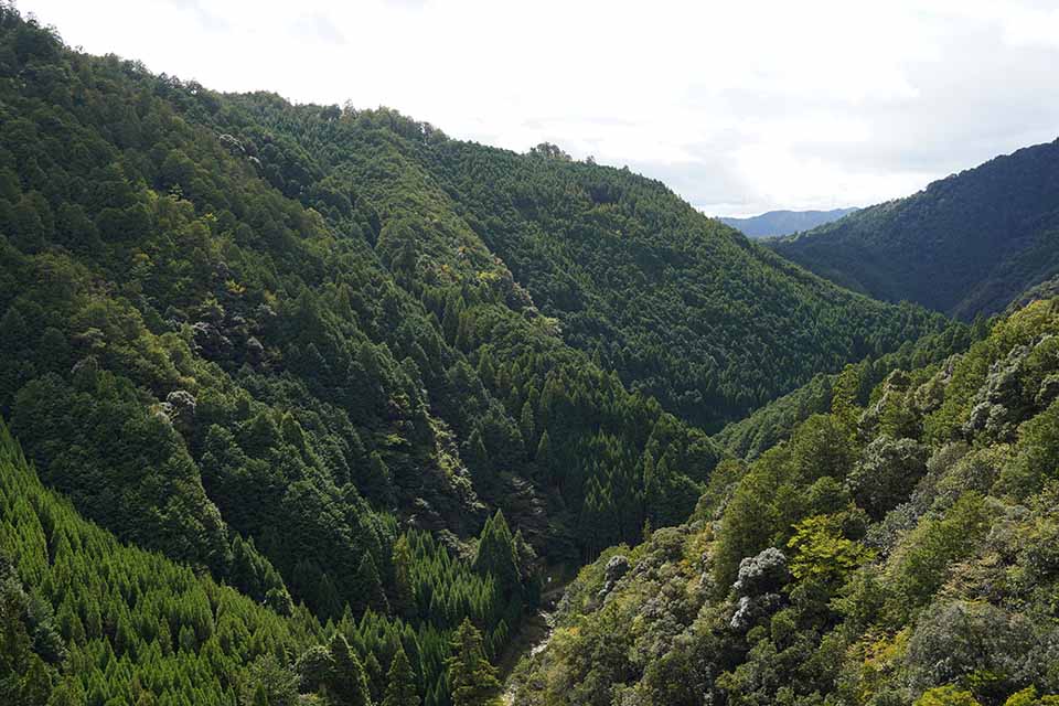 神護寺は山の上にあり、周りの山並みが見下ろせる。