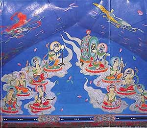 また、そこには極楽浄土を表現し菩薩などが雲に乗っているような天井画が描かれていて、天空を浮遊しているようなイメージになっているという。